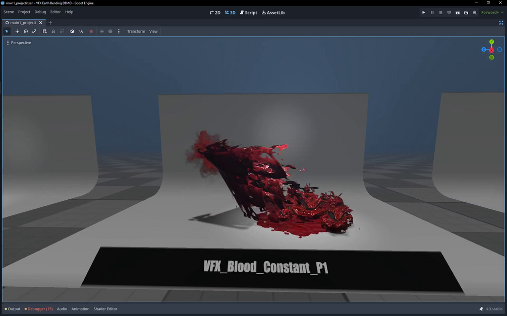 Blood Effects VFX for Godot Engine +4.3, 4.4, 4.5 and above.. (includes all the VFXs presented).