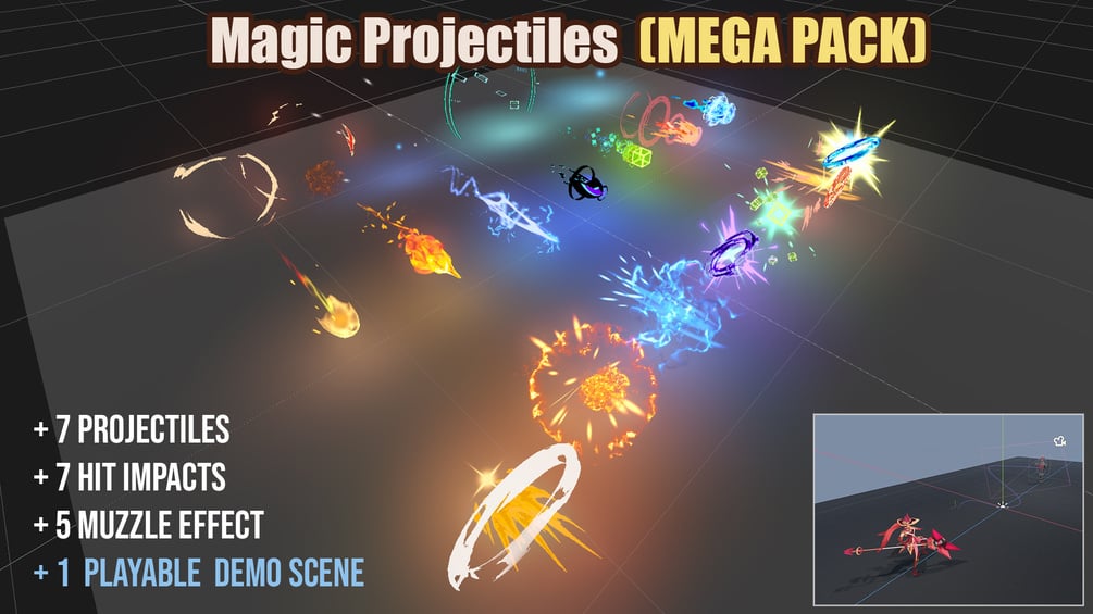 • 2 Fully Playable PC Demo Scene (for projectiles and trails).