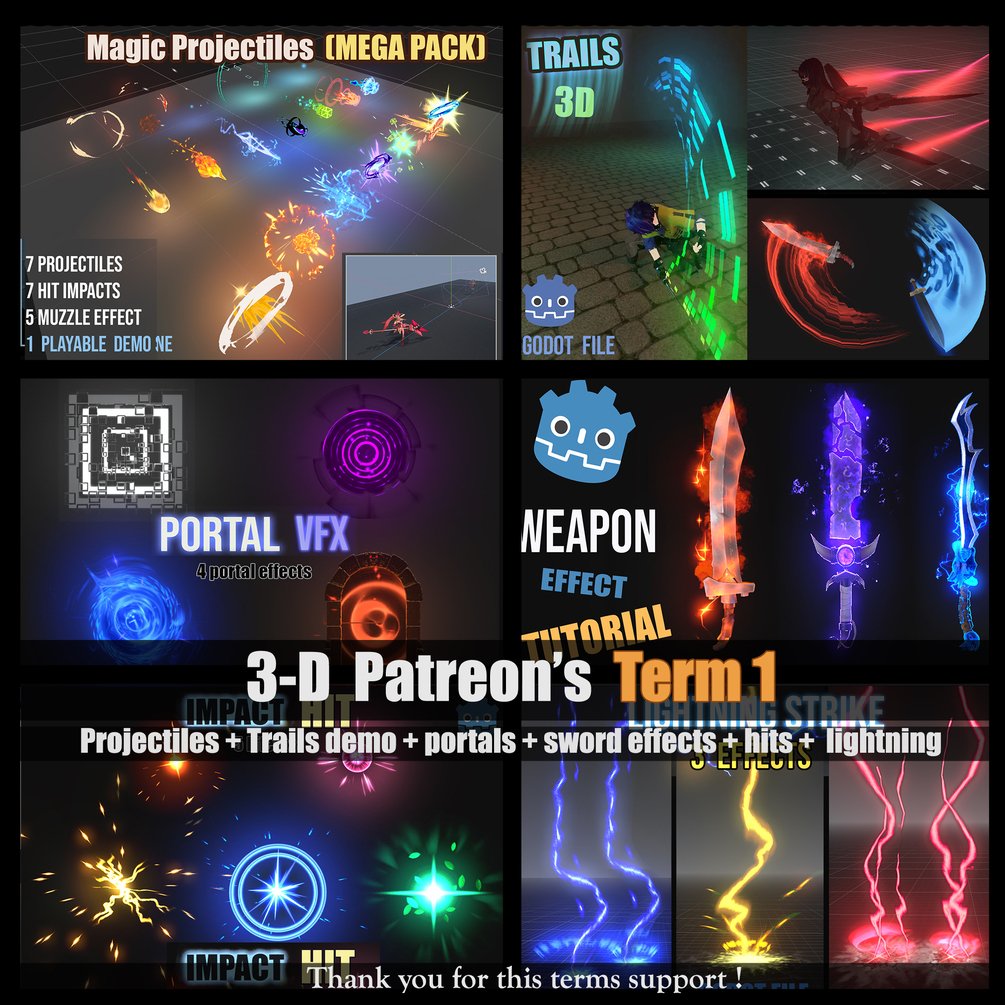 1.- Magic Projectiles VFX for Godot Engine +4.2 (includes all the VFXs presented and a full playable demo scene).